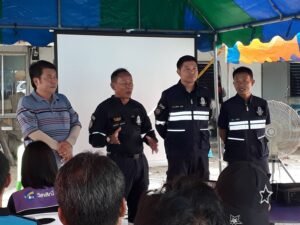 - การฝึกใช้เครื่องดับเพลิง: ฝึกดับเพลิงประเภท A, B, C ด้วยอุปกรณ์จริง (เช่น ผงเคมีแห้ง, CO2, โฟม).